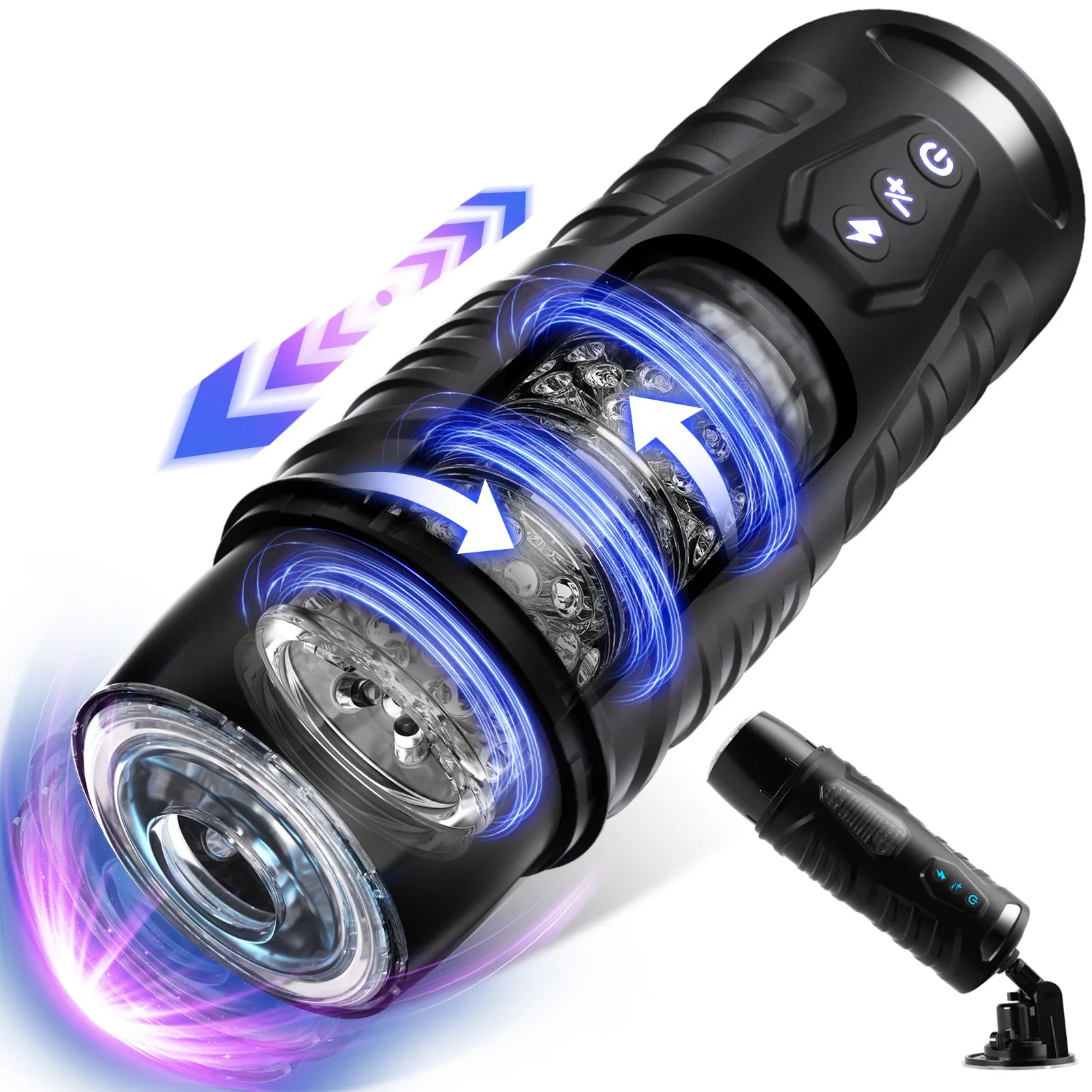 pleasure with 7 thrusting and 7 rotating modes. The adjustable base secures to