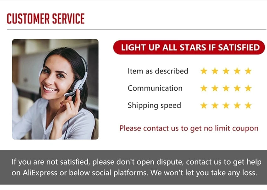 For us, your satisfaction is the most important! We request that you contact us before giving us neutral or negative feedback, tell us about your problem, and we can work together to resolve it.