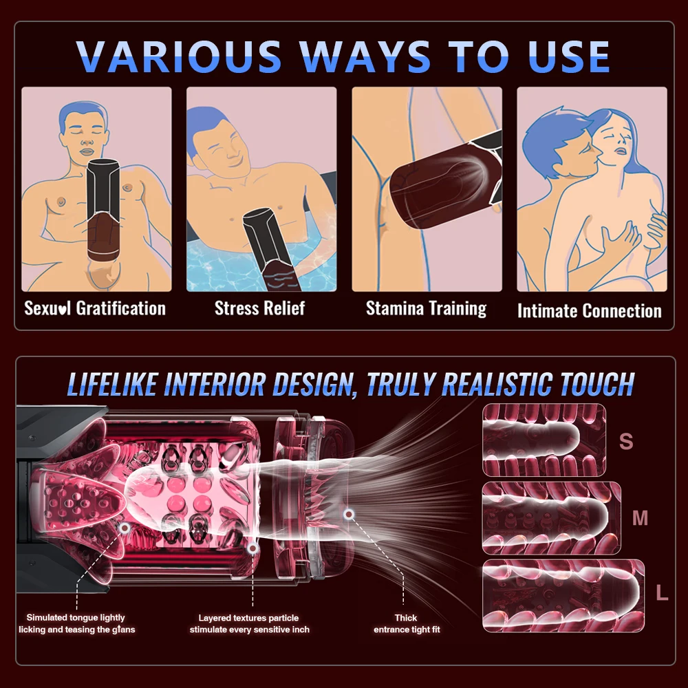 Feel the deep, rhythmic motion of 7 thrusting and 360° rotation patterns, while gentle vacuum suction offers a enveloping experience. A soft, licking tongue tip adds delicate stimulation right where you want it, and textured inner particles amplify every moment. Whether used with warm water for soothing expansion or cool water for refreshing tension release, AceMaster adapts to your mood.