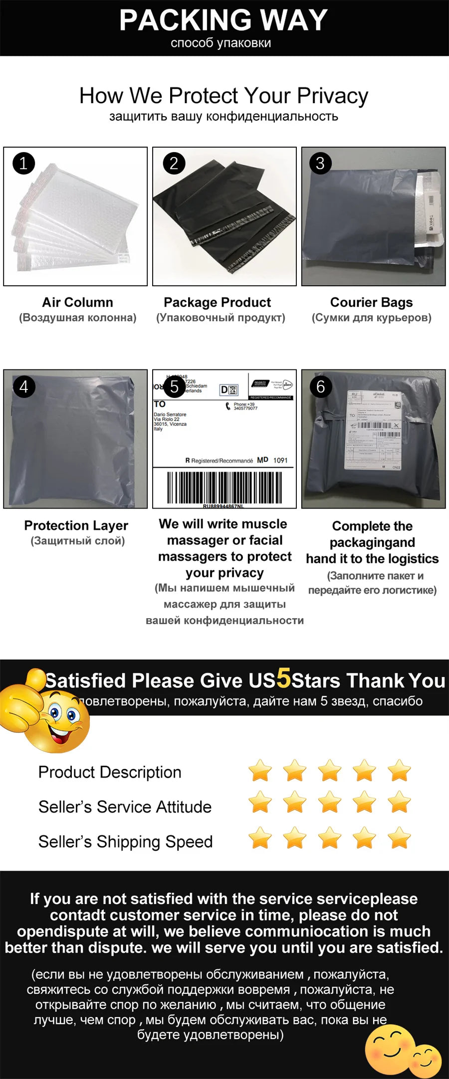 3.Please email to us befor leaving the negative feedback or opening any dispute on the site. Communication is the best way to solve the problems